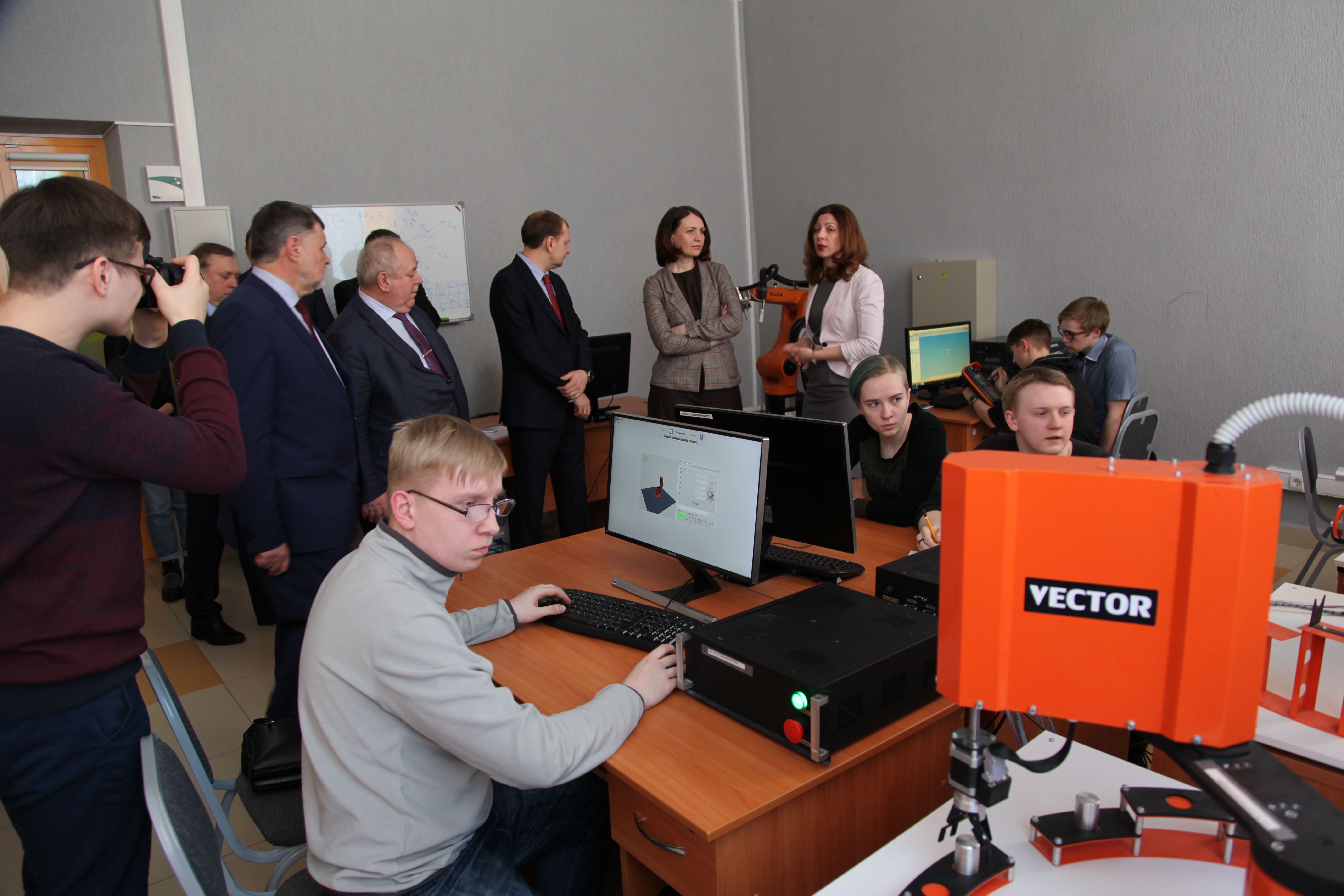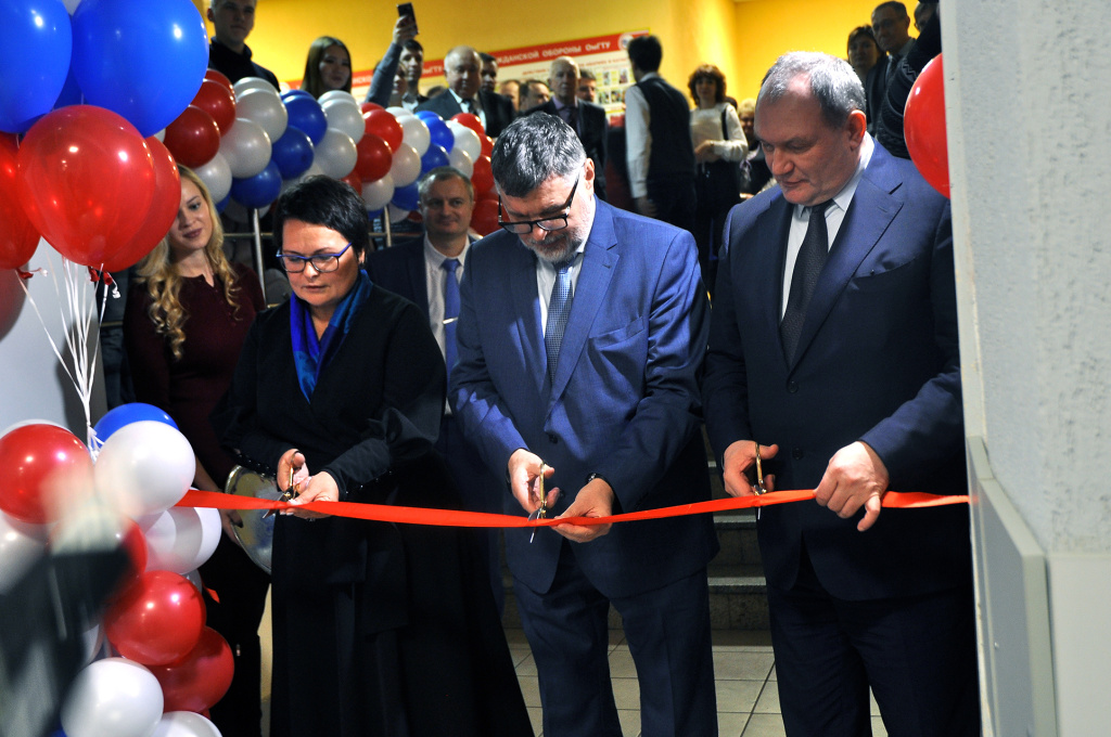 Открытие ЦПВИК "Полет" ректором ОмГТУ Анатолием Владимировичем Косых,заместителем директора департамента  развития персонала Государственной корпорации "РОСКОСМОС" Фоминой Ольгой Эдуардовной и заместителем Председателя Правительства Омской области генералом-майором ФСБ Бондаревым Игорем Сергеевичем.