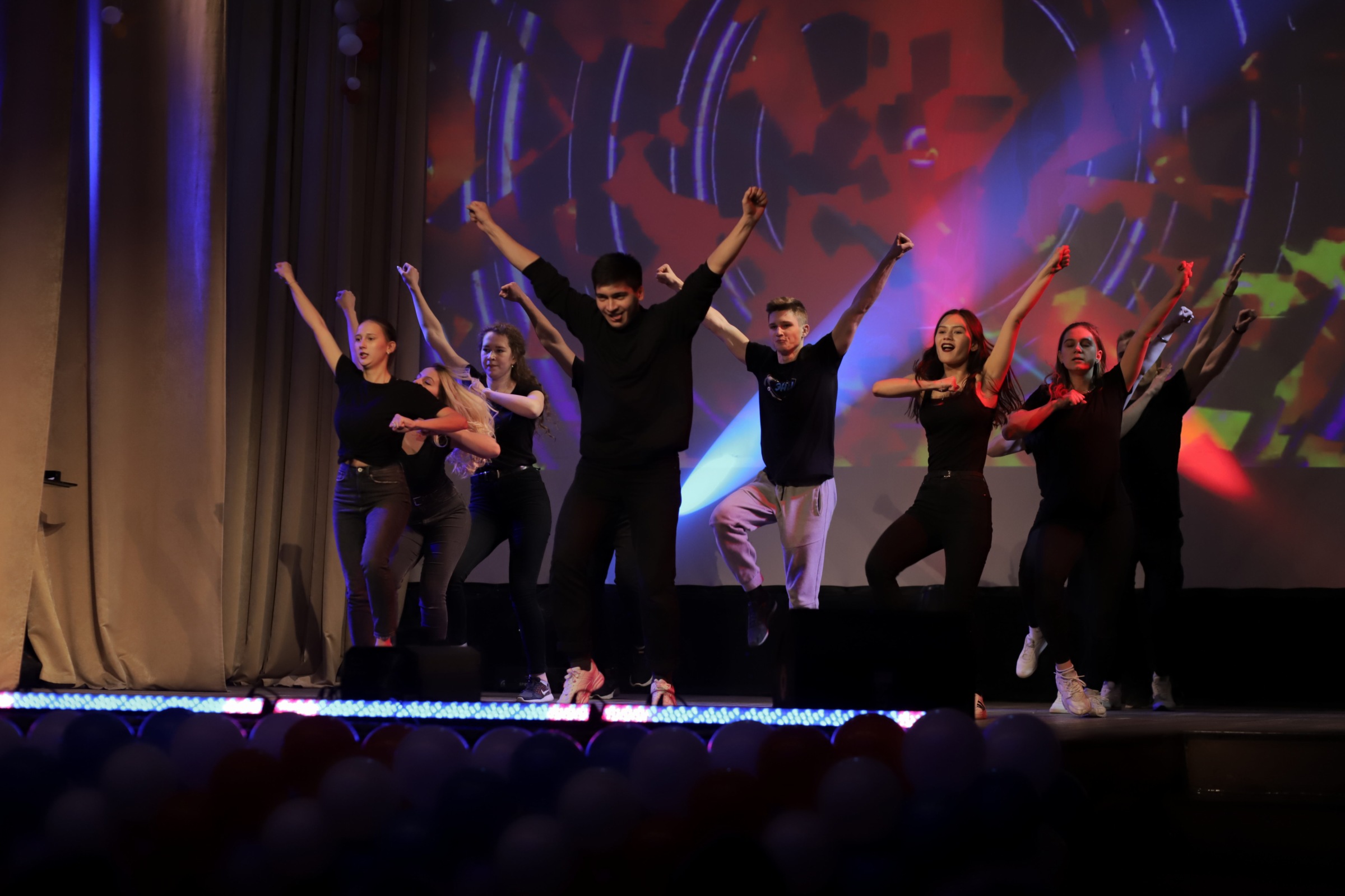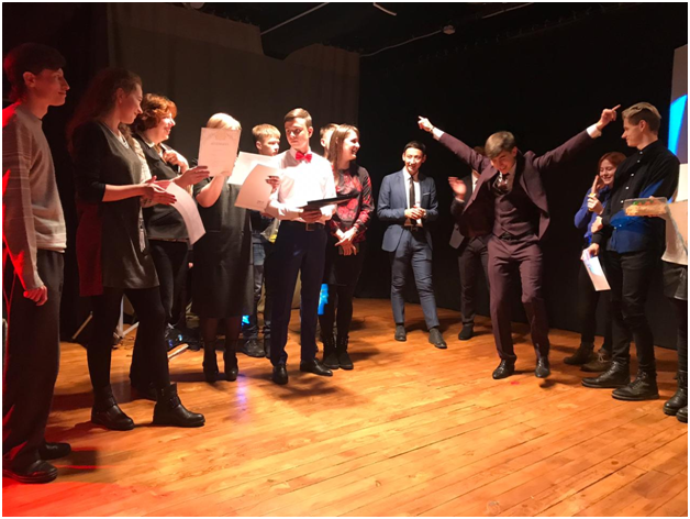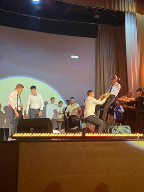 Также жюри оценивали группу поддержки выступающих ребят. Они ходили по залу, выбегали на сцену с плакатами, скандировали кричалки, лишь бы их заметили и услышали!