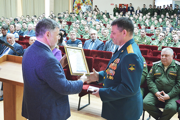 В актовом зале прошел концерт, на котором были вручены медали Министерства обороны РФ: "Медаль за воинскую доблесть I степени" - полковнику Игорю Кудрявцеву и подполковнику Денису Погодаеву, "Медаль за воинскую доблесть II степени" - подполковнику Алексею Щербинкину, "Медаль за отличие в военной службе I степени" - подполковнику Валерию Мунину, "Ветеран Вооружённых сил Российской Федерации" - полковнику Игорю Лепешинскому и подполковнику Владимиру Маслякову.