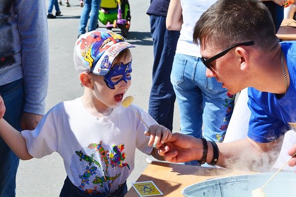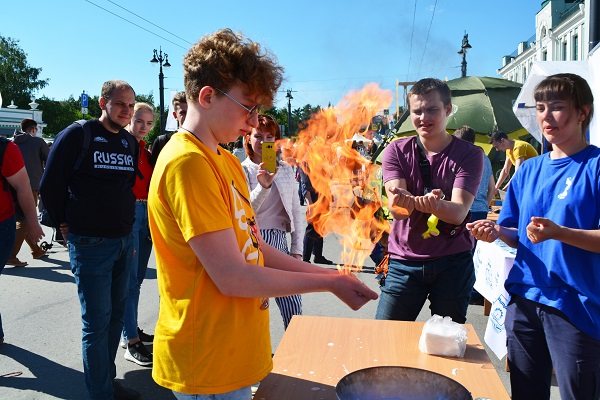 Также под руководством студентов нефтехимического института ОмГТУ каждый желающий мог принять участие в опытах с применением с жидкого азота и огня.