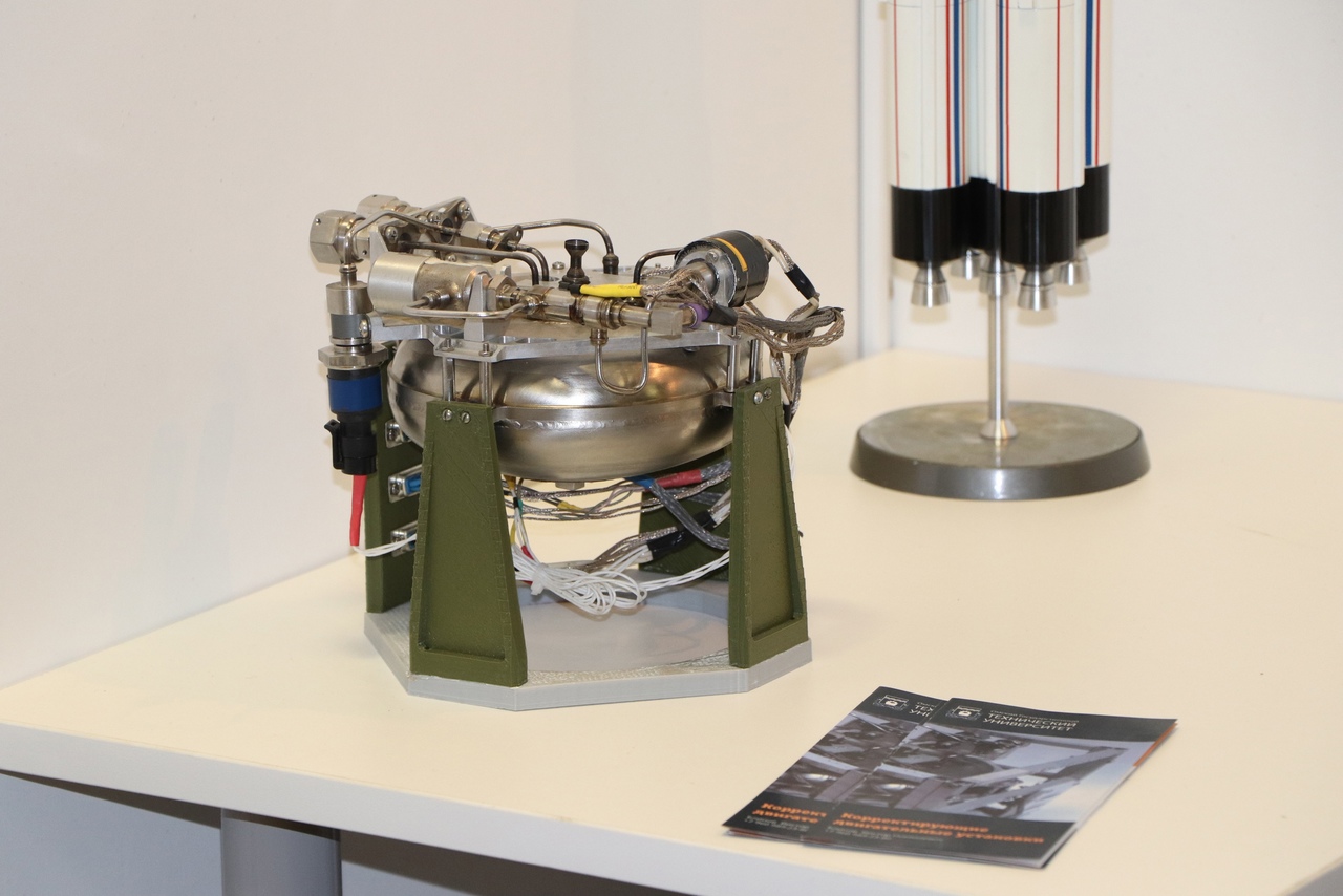 «Корректирующая двигательная установка для наноспутников» – установка применяется для орбитального маневрирования наноспутников за счет реактивной тяги и позволяет решать задачи безопасности РФ, среди которых глобальный непрерывный мониторинг наземных, морских и космических объектов, глобальная оперативная связь, инспекция космических аппаратов, калибровка наземных средств, наблюдение за космическим пространством и другое.
