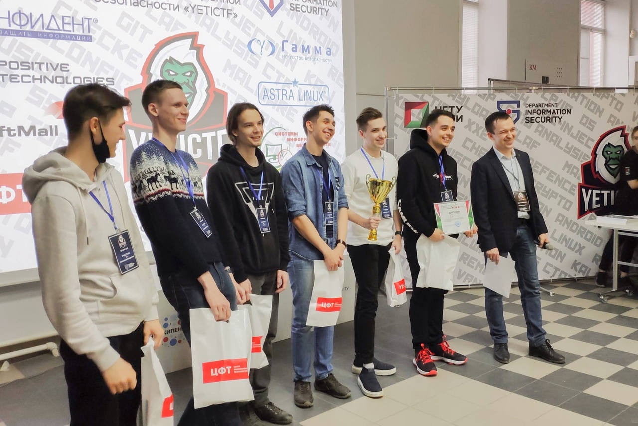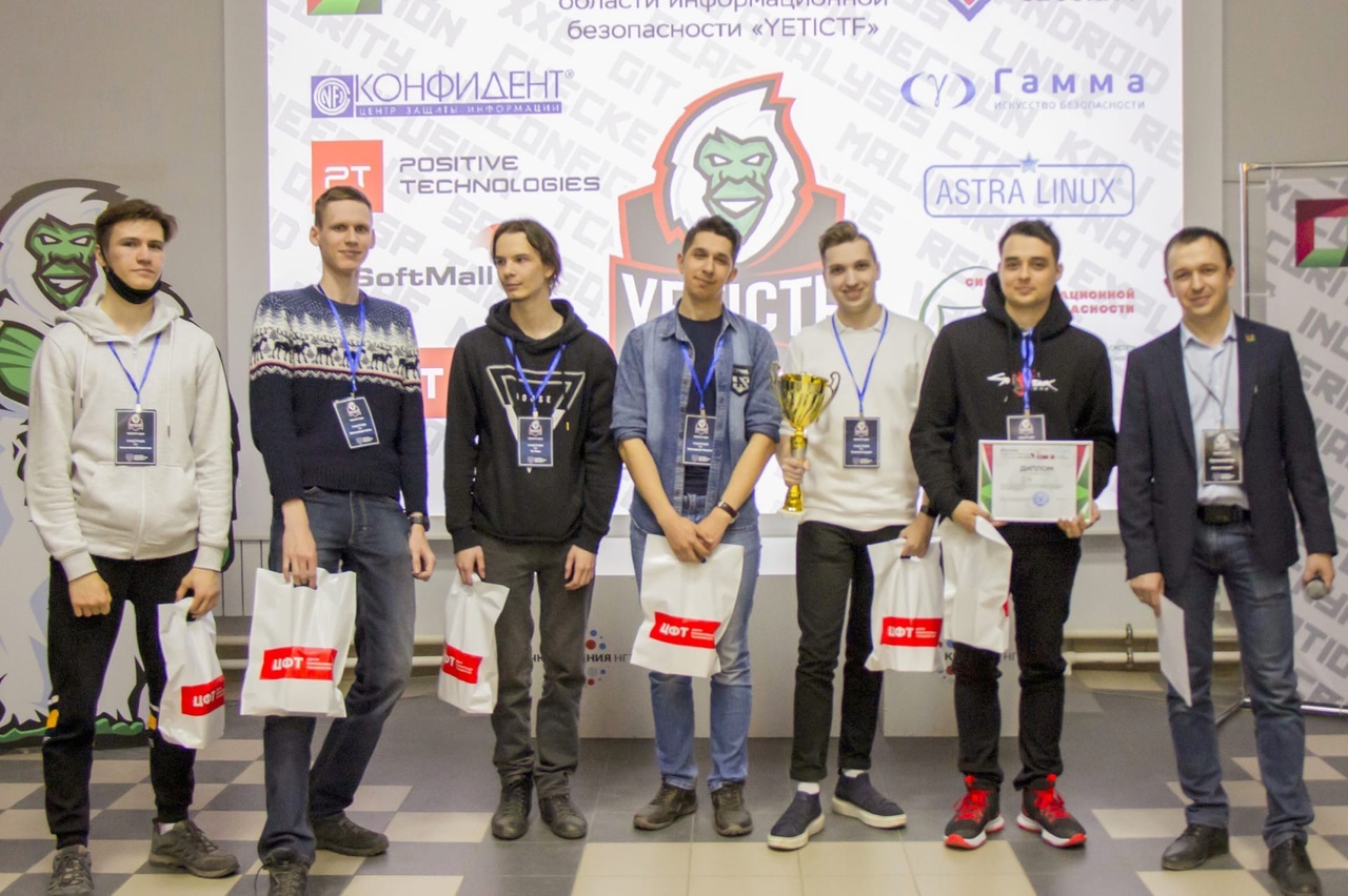 18 апреля завершились межрегиональные открытые соревнования по информационной безопасности YetiCTF 2021. Сразиться за титул чемпионов кибербезопасности смогли 11 команд студентов вузов и других образовательных организаций Сибирского федерального округа.