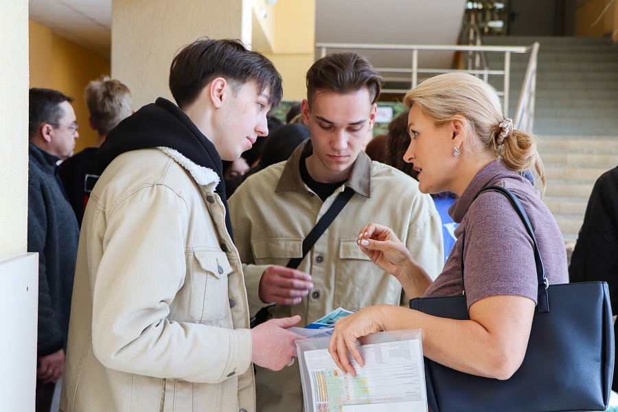 В холле главного корпуса технического университета свыше 300 школьников и их родителей встречали представители факультетов и институтов. Они познакомили гостей с образовательными программами, рассказали о научных направлениях, богатой внеучебной деятельности политехников и возможностях трудоустройства. Помимо этого школьники смогли получить консультацию от кураторов совместной с АО «ОДК» программы подготовки инженеров для авиационной и двигателестроительной отраслей «Крылья Ростеха». Также состоялась сессия с ответственным секретарем приемной комиссии, начальником отдела по приему на обучение Алексеем Седановым.