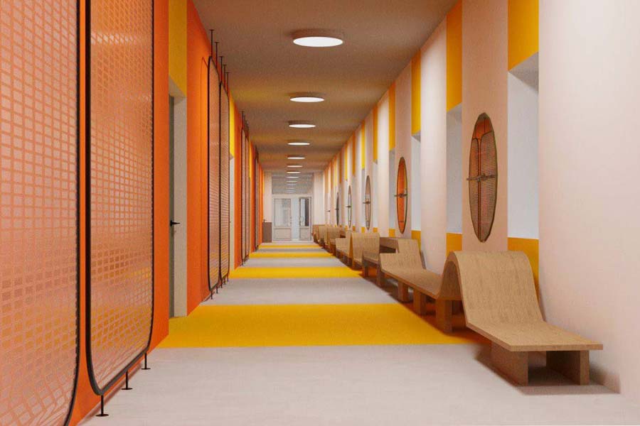 16 студентов кафедры «Дизайн» ОмГТУ начали вести работу в ноябре 2023 года. Они общались со школьниками, их родителями и сотрудниками учебных заведений, знакомились с нормативными актами, изучали историю каждого здания и его техническую документацию, осуществляли обмерные и другие подготовительные работы. Все это помогло им глубоко погрузиться в решение ключевой задачи – сделать пространство школ комфортным, современным, интерактивным и инклюзивным.