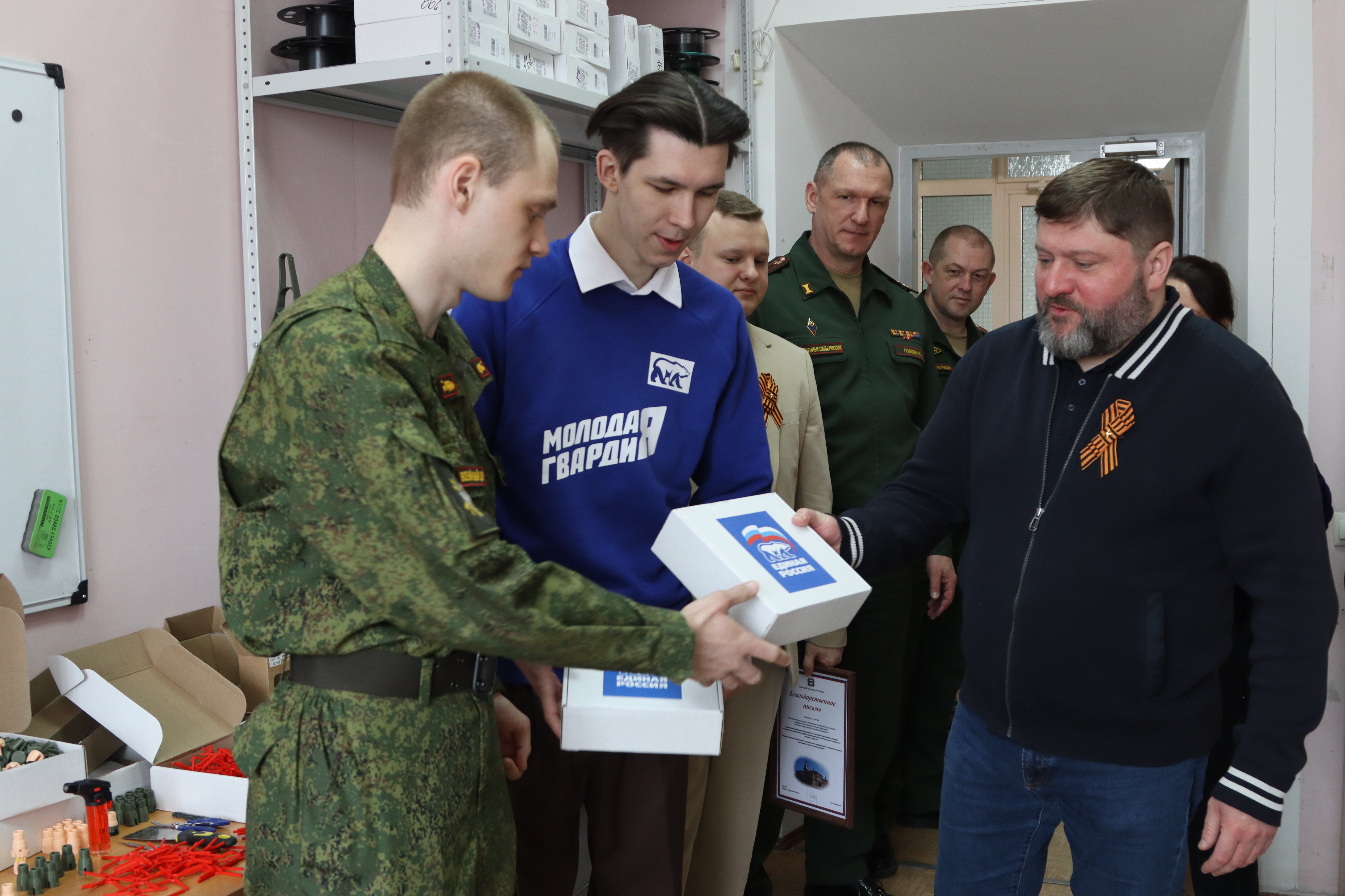 Татьяна Огорелкова, заместитель секретаря регионального отделения «Единой России»: «Поддержка наших бойцов СВО и членов их семей обозначена секретарем регионального отделения «Единой России» Виталием Павловичем Хоценко в качестве приоритетного направления работы, прописано это и в народной программе партии. А здесь, в военном учебном центре, студенты и офицеры без перерывов и выходных отливают детали, которые так необходимы сегодня нашим бойцам, защищающим интересы страны в зоне СВО. Производство требует большого количества расходных материалов, и сегодня мы передали в военный учебный центр 20 катушек с пластиком-филаментом для 3D-принтеров». |