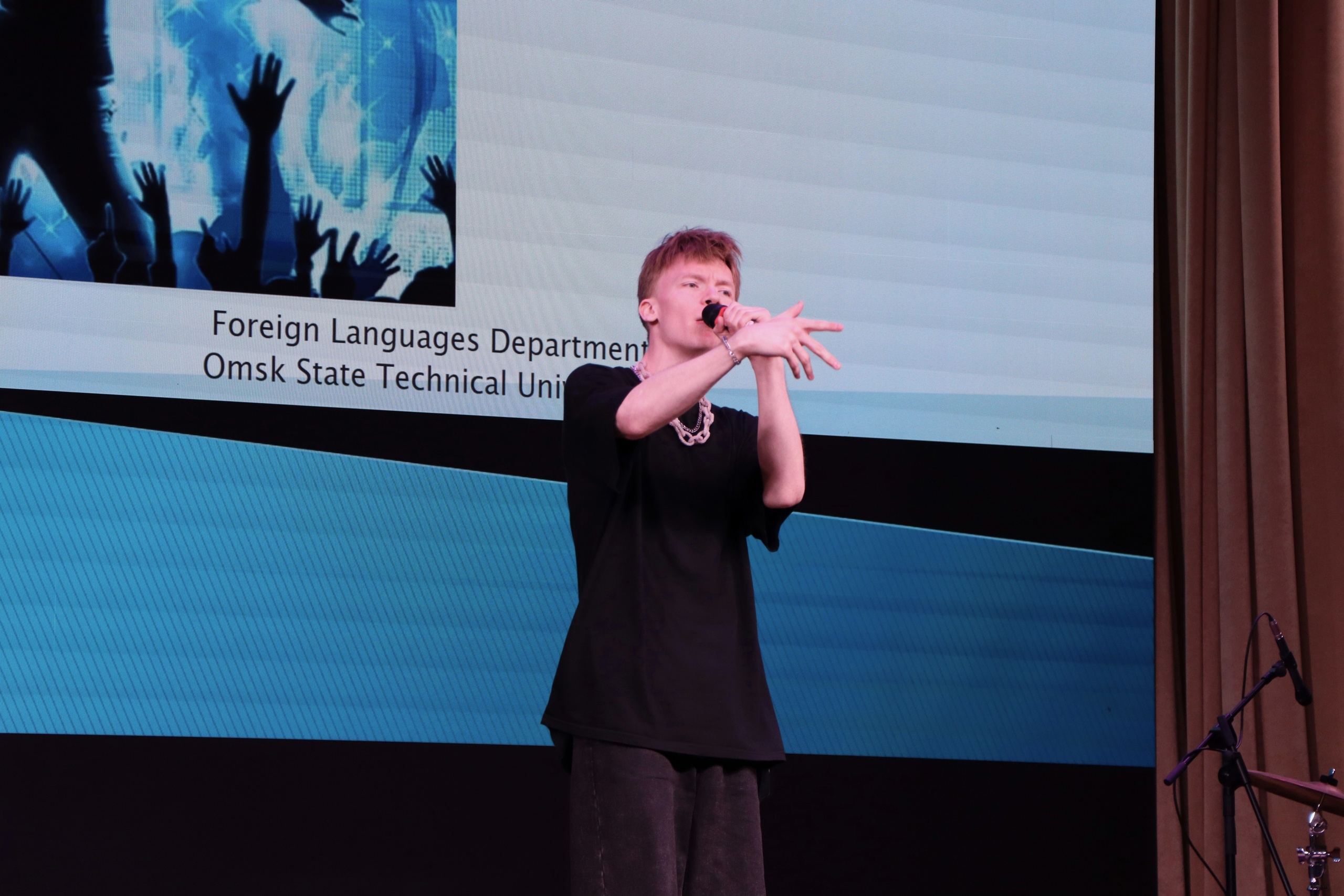 Открыл фестиваль проректор по молодежной политике и воспитательной деятельности Олег Перегудов. Он отметил, что иностранный язык – это одно из направлений, которые дают возможность развиваться, изучать другую культуру, и пожелал участникам и гостям насладиться красотой и благозвучностью выступлений.