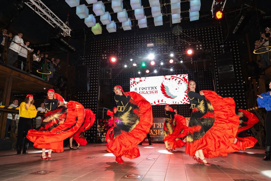 Тема студенческого бала в этом году была по-настоящему волшебной – «В гостях у сказки». На один вечер клуб Angar стал местом действия сказочных сюжетов – 40 политехников погрузили зрителей в фольклорную атмосферу, показав отточенное мастерство, яркие костюмы и зажигательные танцы.